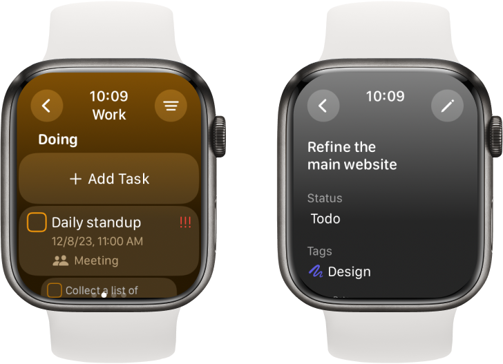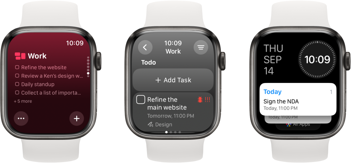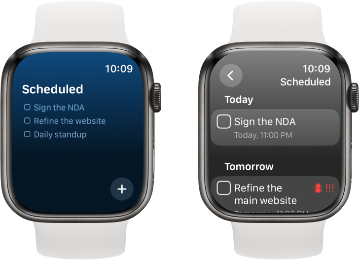 With watchOS 10 you can add a widget to see your Today or Scheduled tasks right from the Watch main screen.